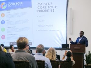 - An inspiring keynote from Rachel Carpenter, Chief Safety Office at Caltrans, on the shift to the Safe Systems Approach in California and across the US and an exciting announcement on the recent signing of the Joint Secretary’s Policy on Road Safety by the California State Transportation Agency (CalSTA) and the California Health and Human Services Agency.