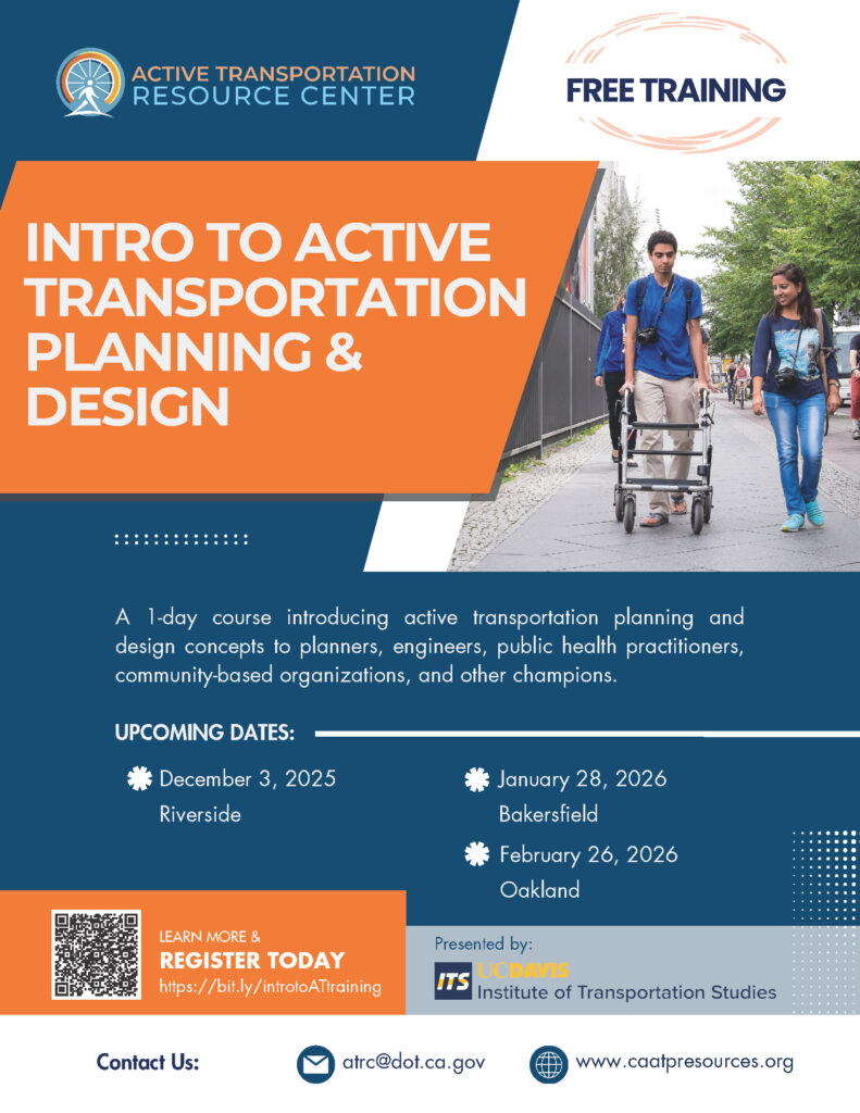 Through the course, you will explore the tools used to assess and evaluate the suitability of transportation infrastructure for use by all types of bicyclists and pedestrians, learn about California’s commitment to support all modes of transportation, and receive an overview of basic pedestrian and bicycle planning and design standards, guidance, and tools.